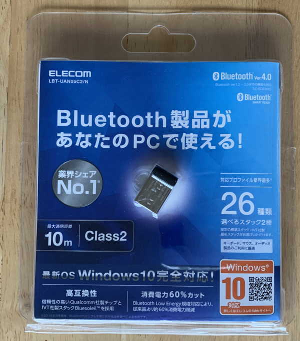 私のパソコンにはBluetooth の機能が付いていませんでしたので、USB2.0接続にて増設してみました。