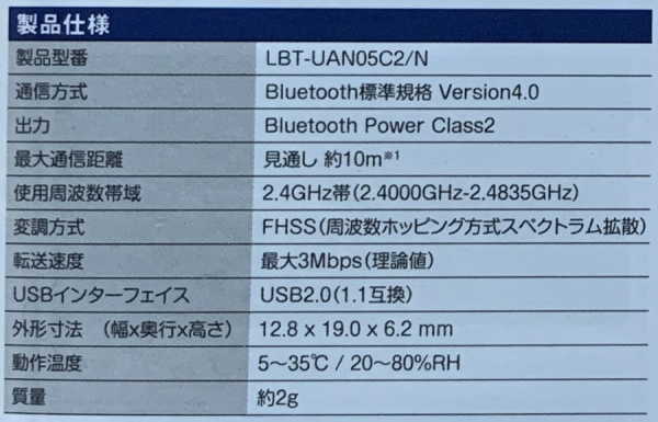 Bluetooth の USBアダプタ(LBT-UAN05C2/N)