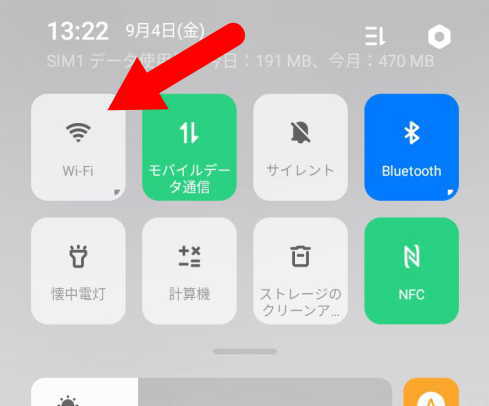 ●測定を開始する前に、自宅等のWiFiに接続しないように、画面上端からスワイプしてWiFi接続をOFFにしておきます。