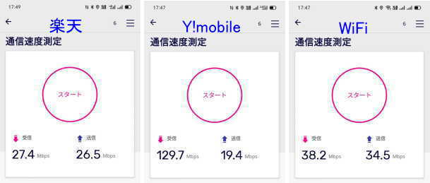 - 左から、楽天のパートナー回線、Y!mobile、WiFiがONの場合