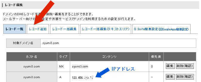 - DNSレコードに「www.syumi3.com」があるか確認