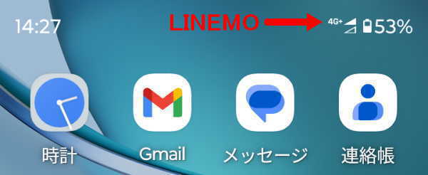切り替わるとLINEMOのアンテナマークの横に4G+の表示が出ました
