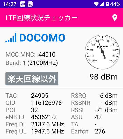 このアプリは、携帯電話回線(LTE)の回線状況を取得するアプリです。