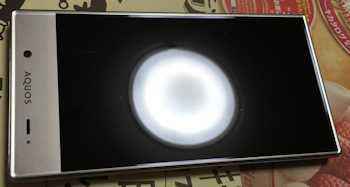 | AQUOS CRYSTAL 305SH 前回の iPad の時と比べると格段の差が有ります。 右のiPhone と比べても遜色ありません。 横のパソコンの画面の映りこみは殆どありません。 |