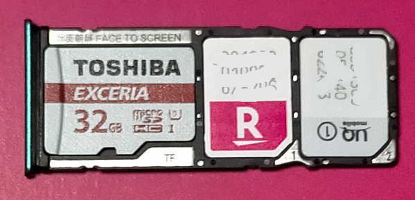 - SIM1に、楽天モバイルの nanoSIM をセット