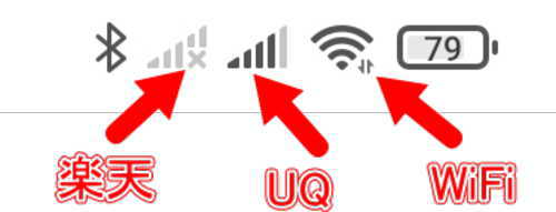 2021年5月現在自宅では圏外となり Rakuten の電波状況が安定しないので、UQmobile を優先で使用するようにスマホを設定。