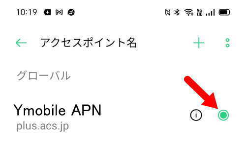 アクセスポイントの「Ymobile APN」をオンにします