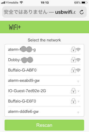 うまく見つからなかった時は、「Rescan」で再度スキャンします。