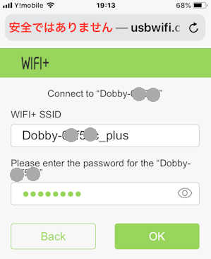 のように _plus が付いたSSIDをタップして接続 - ここでネットワークのパスワードを要求されることがあります。