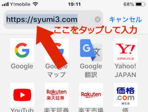 スマホの画面を切り替え、標準ブラウザー を起動し、上部アドレスバーをタップして、直接 "usbwifi.cn"と入力します。