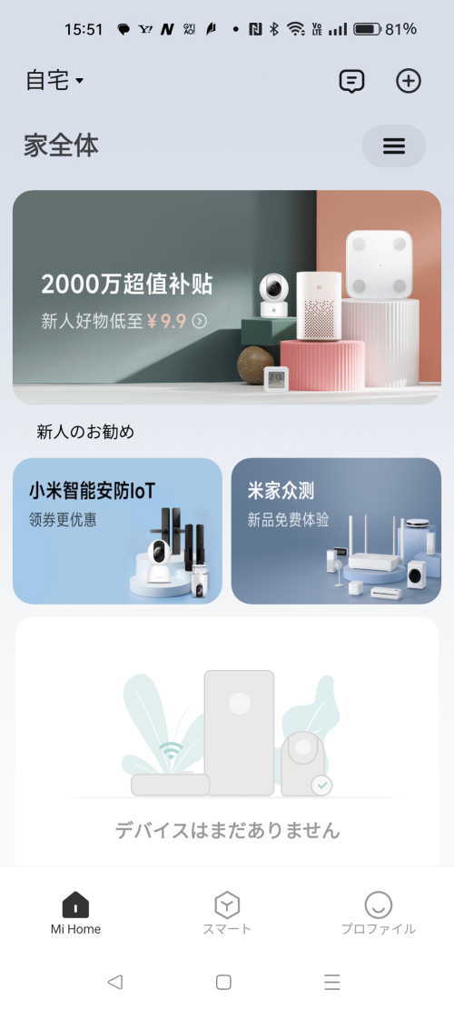 - 「Mi Home」を起動し「Mi Home」の画面を出します。