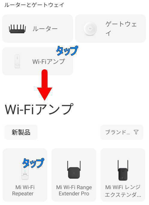 「Xiaomi Mi WiFi Amplifier」を「中継機」と表示しています。