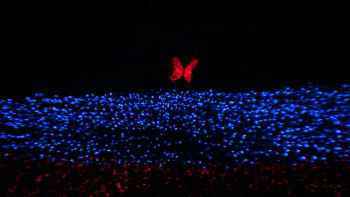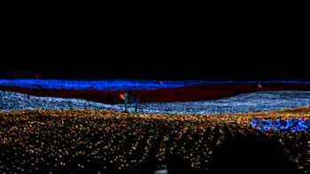 | 花畑全面がライトアップ | 大きな蝶が羽ばたいていた |
