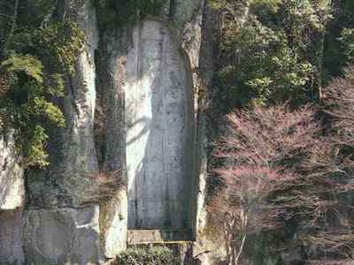 弥勒磨崖仏」(みろくまがいぶつ)を肉眼で見てもはっきり見えないが、ビデオカメラでズームすると形が見える程度。