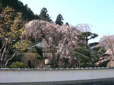 満開になると、樹齢300年とされる珍しい種の小糸しだれ桜2本と、紅しだれ桜30本が咲き誇るらしい。
