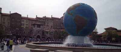 駅を出ると大きな地球儀が出迎えてくれます |