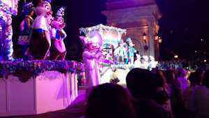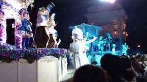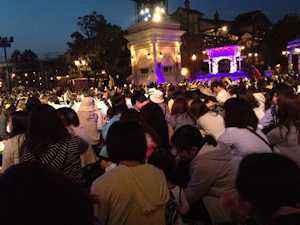 | 私達は夜のショーが楽しみでしたのでゆっくり見物させてもらおうと思っていたところ、すごい人数で開園予定の1時間半前からすごい行列が出来ていました。 半分諦めて園内をぶらぶらし、開園10分前ぐらいに覗いてみるとまだ座るところがありますよと案内してもらいラッキー。 イースター・イン・ニューヨークを、少し横手になりましたが座って充分観賞できました。 |