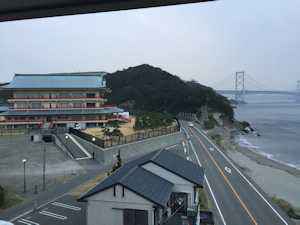 | 海に面した角部屋でした | 窓を開けると大鳴門橋が見えます | 赤い手すりの建物の向こうに 大塚国際美術館があります |