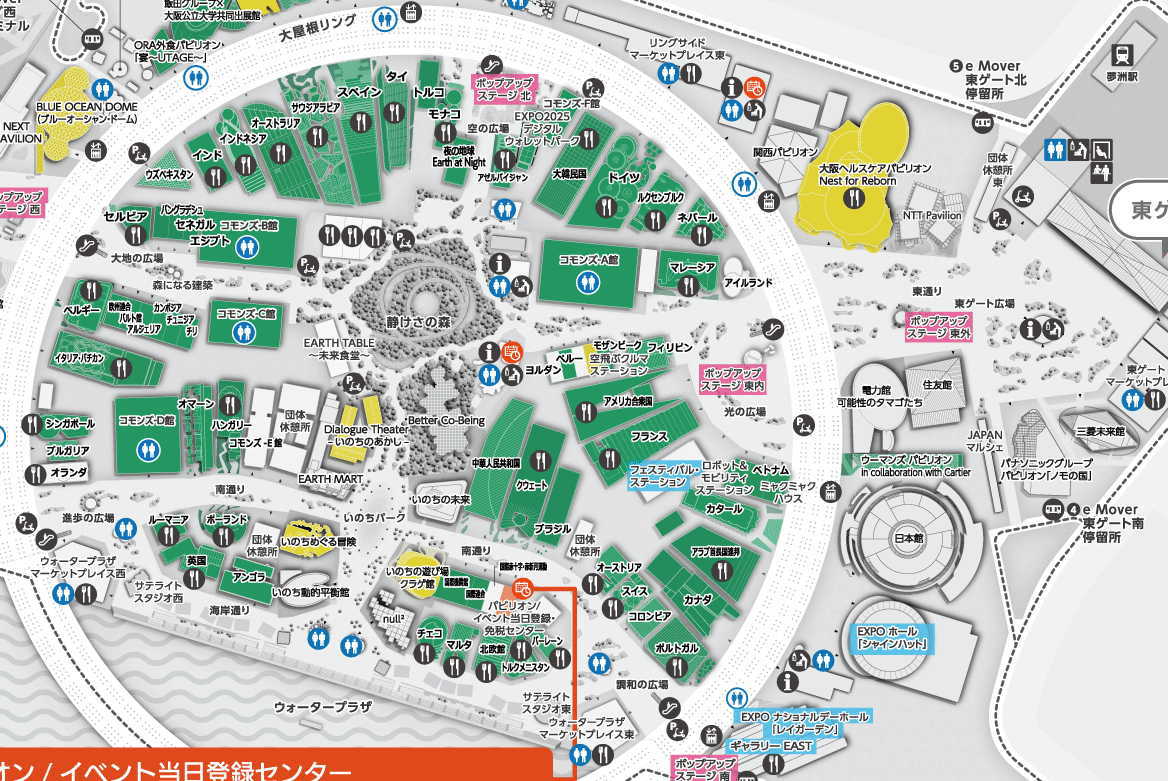 見学のルートの計画も無く場内のパビリオン配置図を片手に歩きました。