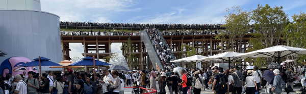 しかしここもかなりの人でマイペースで歩けませんでしたので、円周の4分の1歩いて下りてきました。大屋根リングへのエスカレーターも上も人が多すぎ渋滞していました。