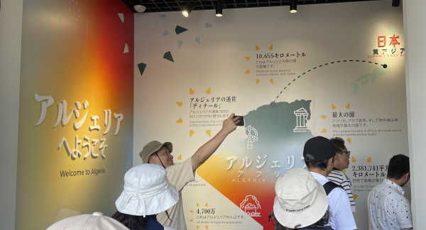 せめてどこかに入ろうと、行列が短か目の「アルジェリア館」に並びましたが、それでも入館まで30分かかりました。内容は展示と小さなスクリーンで国の紹介をしていました。