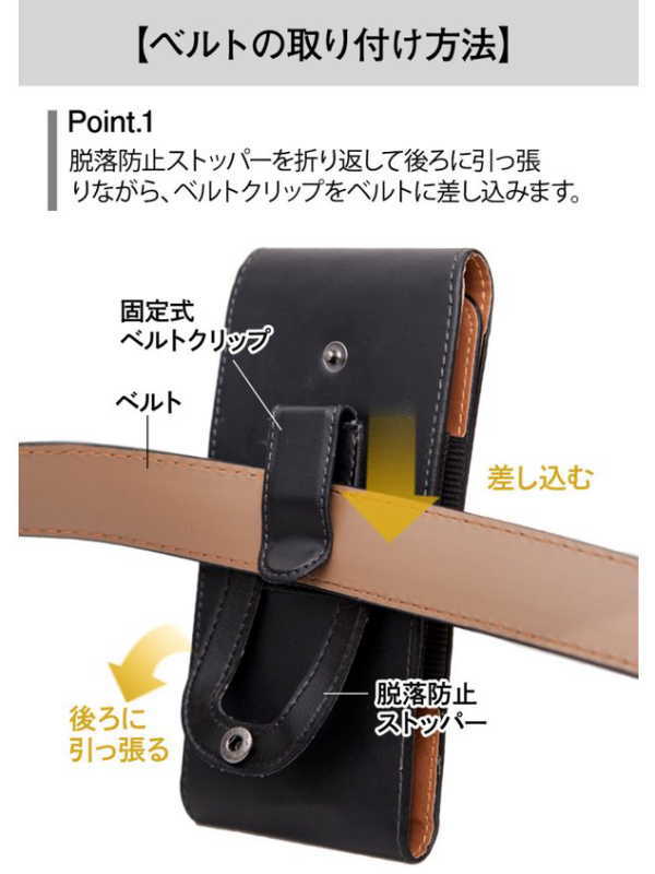 ベルトに差し込んだ後、脱落防止ストッパーで止めます。