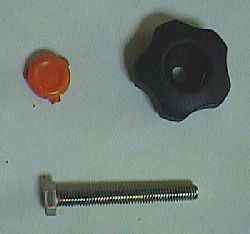 ノブの頭からボルトを差し込み、ボルトの六角頭部分が少し固くなるので力をいれてグッと押し込む。最後に赤いキャップをはめれば出来あがり。大変簡単です。