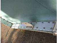 トランサム板は下部2本のボルト(左図2枚) と 左右2本のボルト(右図)で固定されている。